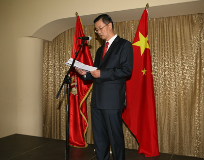 感谢各位应邀出席中华人民共和国成立63周年招待会。63年前,毛泽东主席庄严宣布,“中国人民从此站起来了。”大家知道,1840年的鸦片战争使具有5000年文明史的中华民族失去了尊严,中国从此变成了半殖民地国家。此后,经过100多年的奋斗,直至1949年10月1日中华人民共和国宣布成立之日,中国人民才重新掌握自己的命运。63年后的今天,占世界人口五分之一的中国在政治、经济、社会各领域取得了巨大进步,已发展成为世界第二大经济体,正在为构建和谐世界做出着积极努力和贡献。