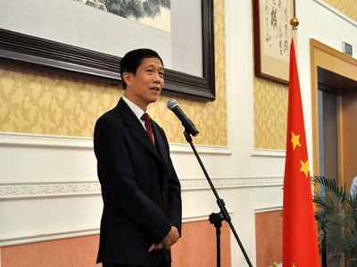 我和使馆的同事们十分高兴与各位侨胞、中资公司、老师和留学生代表共聚一堂,共同庆祝中华人民共和国成立63周年及中秋佳节。在此,我代表使馆向各位表示热烈欢迎并致以节日的问候和美好的祝福!