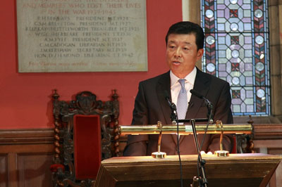 在中英关系的过去,牛津校友起到了举足轻重的作用。对中英关系的未来,牛津学子也一定会大有作为。所以我今天来到你们中间,希望你们顺应时代,承担起使命与责任,与中国的青年一代一道努力,谱写中英关系未来的新篇章。