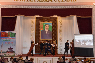 马赫图姆库里大学是土库曼斯坦最知名的综合性高等学府,早在十几年前就开设了汉语专业,但举办“汉语周”活动却是该校建校史上第一次。汉语专业师生们满怀憧憬、热情洋溢、精心组织,中国使馆在道具、场地布置等方面给予全力支持。闭幕式是“汉语周”压轴戏,汉语师生们用近两个小时的时间为大家呈现了一场原汁原味、精彩纷呈、丰富多彩的中国文化演出,充分展现了流畅娴熟的汉语表达能力以及对中国文化、中土两国交往历史的了解。