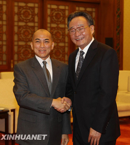 2010年2月23日下午,全国人大常委会委员长吴邦国在人民大会堂会见了柬埔寨国王诺罗敦·西哈莫尼。