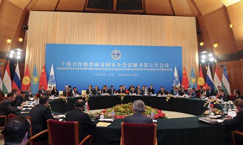 2012年4月12日,上海合作组织成员国安全会议秘书第七次会议在北京举行。中国国务委员孟建柱主持会议并发言。