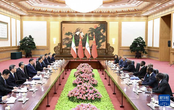 2024年5月28日下午,国家主席习近平在北京人民大会堂同来华进行国事访问的赤道几内亚总统奥比昂举行会谈。两国元首宣布,将中赤几关系提升为全面战略合作伙伴关系。