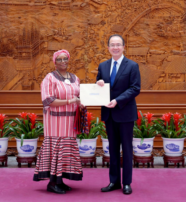 2025年10月11日,外交部部长助理兼礼宾司司长洪磊接受纳米比亚新任驻华大使埃姆武拉递交国书副本。埃姆武拉大使于9月30日抵华。