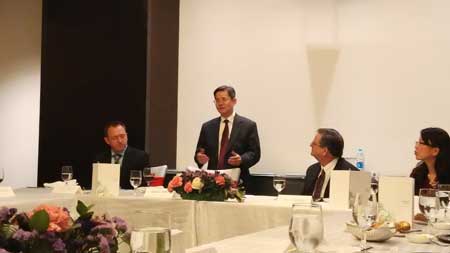 2015年3月16日,外交部部长助理郑泽光应邀参加中国美国商会工作餐会,就中美关系和中美经贸合作同美国在华企业代表交换了意见。