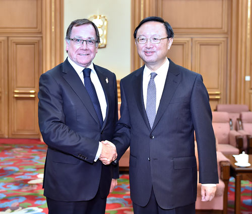 2016年10月18日,国务委员杨洁篪在中南海会见新西兰外长麦卡利。