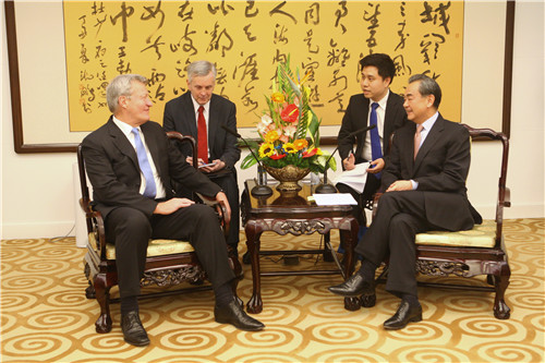 2016年12月20日,王毅外长会见即将离任的美国驻华大使博卡斯。