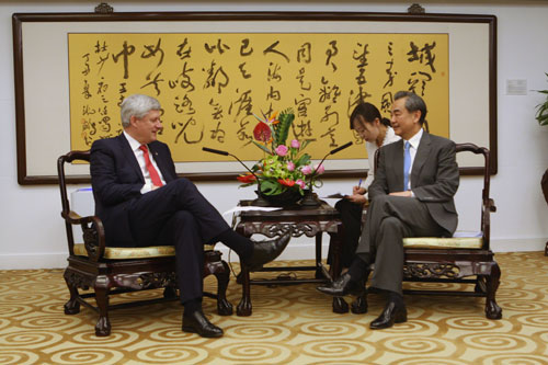 哈珀积极评价当前加中关系,表示将尽己所能促进加中务实合作。双方还就自由贸易、全球政治安全形势等交换了意见。