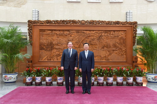 2021年5月25日,外交部副部长谢锋会见上海迪士尼度假区总裁薛逸骏一行。