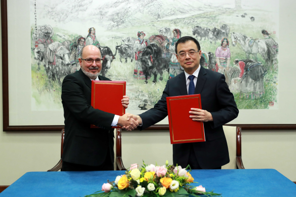 2024年11月25日,外交部部长助理刘彬与古巴驻华大使白诗德分别代表两国外交部在北京签署中古外交部档案领域合作协议。协议的签署将促进双方外交部开展外交档案领域的交流与合作,助力两国关系持续深化,丰富中古命运共同体内涵。