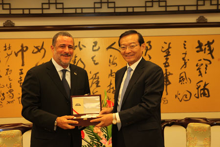 2015年8月20日,外交部副部长张明会见即将离任的佛得角驻华大使德莫赖斯。