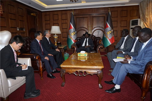 2016年5月5日至6日,中国政府非洲事务特别代表钟建华访问南苏丹,分别会见南总统基尔、第一副总统马夏尔、外交与国际合作部长阿鲁尔、石油部长杜奥普、矿产部长塔班、联南苏团(UNMISS)团长洛伊、南问题联合监督与评估委员会(JMEC)秘书长卡贝迪。
