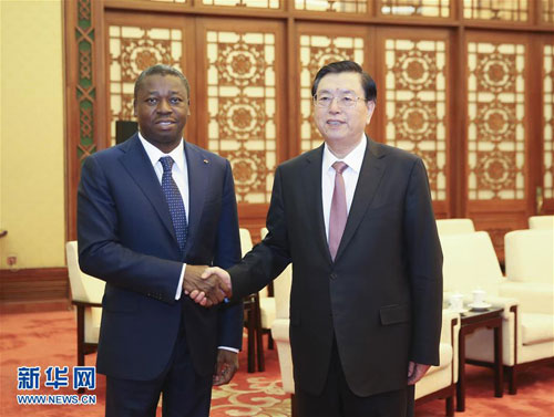 张德江说,中多传统友谊深厚。总统先生此次访华,习近平主席与你就中多关系发展进行了全面规划,为促进两国友好合作注入新的强劲动力。中方将秉持真实亲诚理念和正确义利观,与多方一道,认真落实两国元首重要共识,推动中非合作论坛约翰内斯堡峰会成果更早更多在多哥落地。中国全国人大愿进一步发展同多哥国民议会友好关系,发挥议员友好小组的作用,加强在发展经验等领域交流,为推进各领域合作提供良好的法律保障。