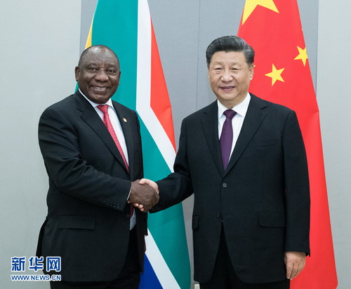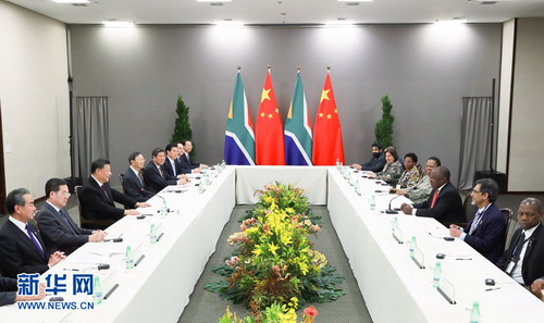 习近平指出,中南同为主要发展中国家和新兴市场经济体,对内都面临发展经济、改善民生的重任,对外都坚定维护多边主义、反对单边主义和霸凌行径。中方愿同南非密切协作,坚定维护好发展好中南全面战略伙伴关系。双方要继续保持战略沟通,加强党际交往和治国理政经验交流,在事关彼此核心利益和重大关切问题上相互理解、相互支持,巩固“同志加兄弟”的特殊友谊和高度互信。双方要加强发展战略对接,积极扩大双边贸易和投资,拓展产能产业、基础设施建设等领域合作,共建“一带一路”。中方愿同南非方面共同努力,加强金砖国家团结合作,推进中非合作论坛建设,保持在重大国际和地区问题上的密切沟通协调,维护国际公平正义。