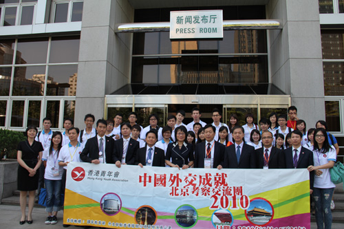 2010年8月16日,由香港中联办和香港青年会共同组织的“中国外交成就北京考察交流团2010”共140多名香港大学生参访外交部。港澳台司王冬副司长会见交流团,政策司汪文斌参赞、新闻司张宜琪副处长介绍了当前国际形势、中国外交政策和外交部新闻发言人制度。香港交流团团员们表示,此次参访使他们对国家外交工作有了直观和全面了解,增长了见识,开阔了视野,是一次难得的学习机会,今后将更多关心和支持祖国的外交事业。