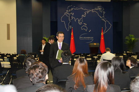 同日,该团旁听了外交部例行记者会,与发言人刘为民参赞进行互动,并听取政策司张养吾参赞和新闻司官员介绍国际形势、国家外交政策以及外交部新闻发布制度。学员纷纷表示,能够走进外交部并近距离接触外交官倍感荣幸和亲切,此访加深了大家对外交部和祖国外交事业的了解,今后一定会更多关心和支持国家外交。