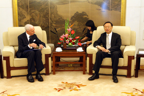 2012年8月22日,外交部长杨洁篪会见应邀来华访问的国际移民组织总干事斯温。