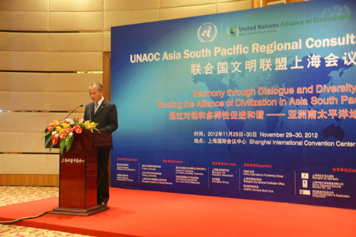 2012年11月29日,外交部副部长崔天凯出席在上海举行的联合国文明联盟亚太地区协商会议并在开幕式上致辞。