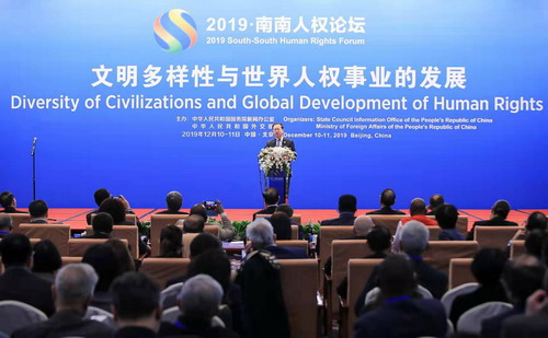 2019年12月10日至11日,国务院新闻办公室和外交部共同主办“2019·南南人权论坛”。中共中央政治局委员、中宣部部长黄坤明作主旨演讲。外交部副部长马朝旭出席主旨演讲活动并致辞。