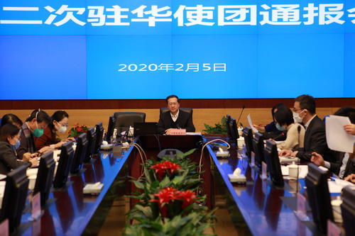 2020年2月5日下午,外交部副部长马朝旭主持召开面向外国驻华使馆(团)的第二次通报会,通过网上平台进行,180余个驻华使馆(团)代表参加。国家卫健委及外交部通报疫情形势及中国政府抗击疫情努力,并回答了使节们关心的问题。