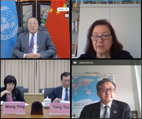 2020年9月10日,中国—联合国和平与发展基金指导委员会第五次会议通过视频方式召开。中国常驻联合国代表张军大使、联合国秘书长办公室主任维奥蒂、联合国经社事务副秘书长刘振民、外交部国际司司长杨涛、财政部行政政法司司长王瑛作为基金指导委员会委员出席会议。