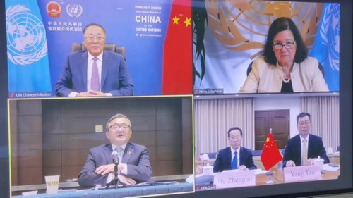 2021年10月11日,中国—联合国和平与发展基金指导委员会第六次会议通过视频方式召开。中国常驻联合国代表张军大使、联合国秘书长办公室主任维奥蒂、联合国经社事务副秘书长刘振民、外交部国际司司长杨涛、财政部行政政法司司长何振国作为基金指导委员会委员出席会议。