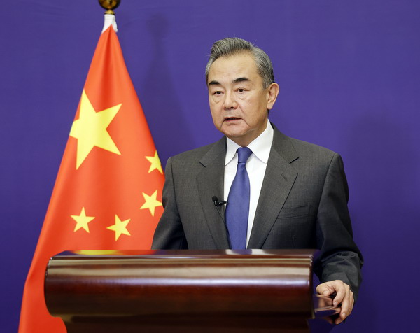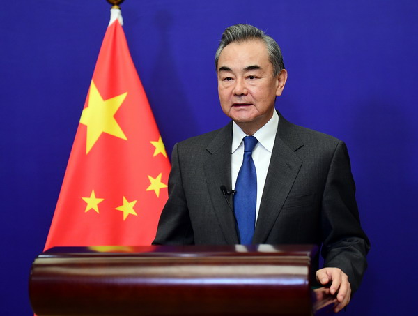 2022年2月25日,国务委员兼外长王毅以视频方式出席联合国大会新冠疫苗高级别会议。