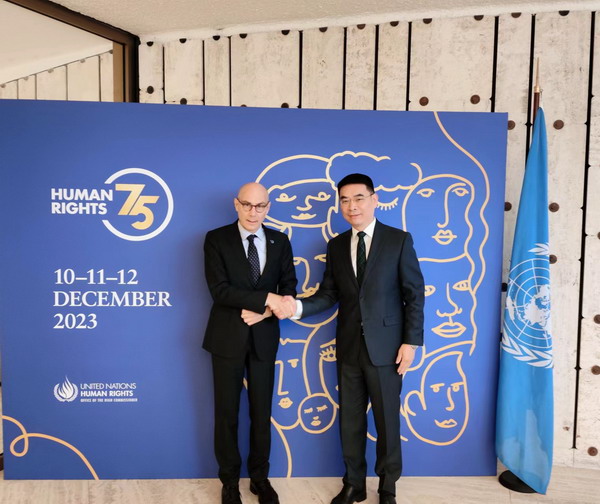2023年12月13日,外交部国际司司长申博在日内瓦会见联合国人权高专图尔克。双方就中国同人权高专办合作及相关国际和地区热点问题等深入交换了意见。