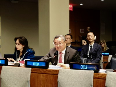 2019年10月11日,中国出席第74届联合国大会裁军与国际安全委员会(联大一委)代表团团长、外交部军控司司长傅聪在纽约联合国总部参加会议一般性辩论并发言。