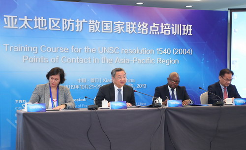 一、2019年10月21日,由中国外交部、联合国安理会防扩散委员会、联合国裁军事务办公室联合举办的第三期“亚太地区防扩散国家联络点培训班”在福建省厦门市开幕。