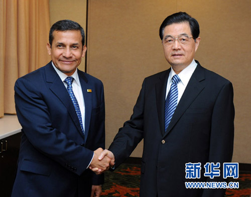 2011年11月11日,国家主席胡锦涛在美国夏威夷州首府檀香山会见秘鲁总统乌马拉。两国元首就双边关系及共同关心的问题坦诚深入交换了意见,一致同意共同努力推动中秘战略伙伴关系进一步向前发展。