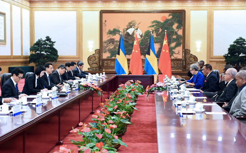 2015年1月8日下午,国务院总理李克强在人民大会堂会见来华出席中拉论坛首届部长级会议的巴哈马总理克里斯蒂。