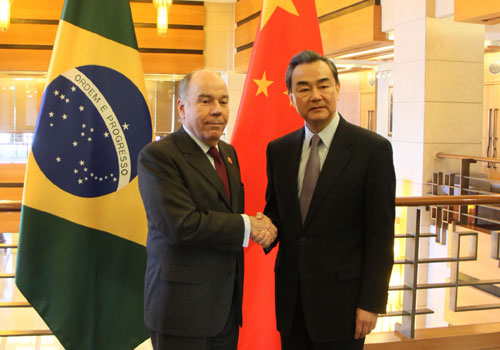 王毅表示,在巴西新一届内阁刚刚成立之际,罗塞芙总统即委派外长先生专程来华出席中拉论坛首届部长级会议,体现了巴方对中巴关系和中拉整体合作的高度重视。去年习近平主席成功对巴西进行国事访问,推动两国关系进入新的发展阶段。中巴是全面战略伙伴。中方愿同巴方一道,加强沟通协调,密切各领域、各层级交往,提升双边合作水平,使中巴合作继续走在南南合作的前列。