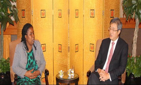 2015年10月14日,外交部拉美司司长祝青桥会见来华参加“2015国际减贫与发展高层论坛”的格林纳达社会发展与住房部长托马斯,就中格关系、减贫与发展等问题交换意见。