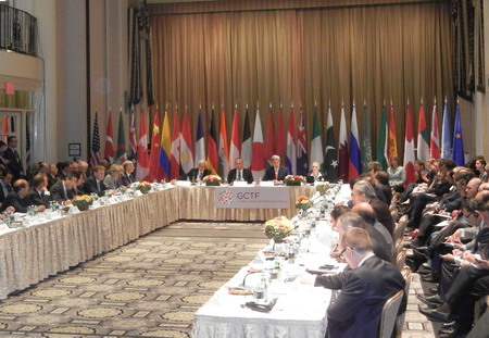 2014年9月23日,涉外安全事务司司长刘光源代表王毅外长出席在纽约举行的“全球反恐论坛”第五次部长级全会,并宣读王毅外长书面发言,重点就加强国际反恐合作、推进“全球反恐论坛”发展等问题阐述了中方立场。美国国务卿克里、土耳其外长查武什奥卢共同主持会议,联合国负责政治事务的副秘书长菲尔特曼与会并致辞,瑞士联邦主席、澳大利亚、加拿大、丹麦、西班牙、意大利、沙特、巴基斯坦等13国外长及论坛其他成员高级别代表出席会议并发言。
