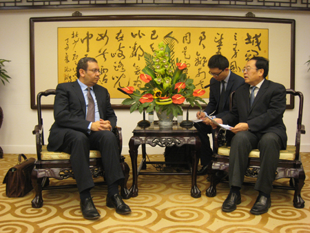 2015年12月3日,外交部副部长程国平在北京会见来华出席中埃首次反恐磋商的埃及外交部反恐司司长哈立德·阿兹米。双方就国际地区反恐形势、中埃反恐合作等议题交换了看法。