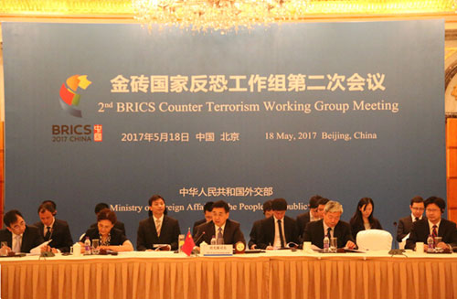 2017年5月18日,金砖国家反恐工作组第二次会议在北京举行。中国外交部涉外安全事务司司长刘光源主持会议。中方代表团由外交部、公安部、人民银行等有关部门代表组成。俄罗斯外交部新挑战和新威胁局局长罗加乔夫、印度外交部反恐事务联合秘书辛格维、南非国家情报协调委员会代理情报协调员马西亚帕托、巴西驻华使馆副馆长马塞洛率代表团与会。