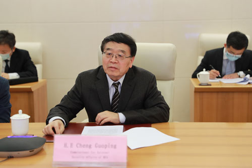 2020年11月12日,外交部涉外安全事务专员程国平同阿富汗国家安全委员会副顾问法希姆举行中阿跨部门跨地区安全合作机制视频会议,就双边关系、打击“东伊运”及地方民生合作交换意见。驻阿大使王愚、阿驻华大使卡伊姆和两国相关部门代表参会。