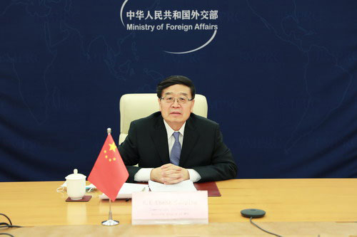 2020年12月18日,外交部涉外安全事务专员程国平同阿联酋国际反暴力极端主义示范中心主席阿里举行视频会晤。驻阿大使倪坚视频参会。