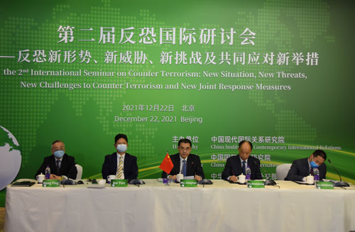 本次研讨会由中国现代国际关系研究院主办、中国国际问题研究院协办。俄罗斯、美国、英国、法国、阿富汗、马来西亚、哈萨克斯坦、阿联酋、南非、埃及、巴西等17国官员、反恐机构负责人和反恐领域专家学者视频参会。