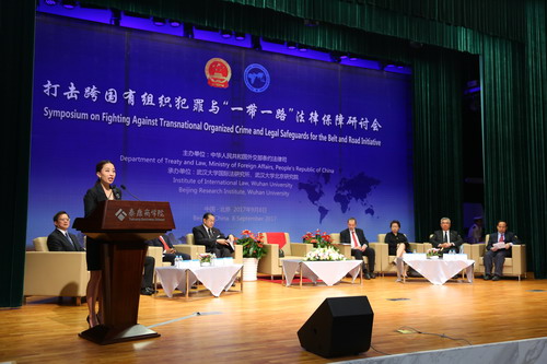 外交部条法司司长徐宏主持研讨会。徐宏在开幕讲话中指出,跨国有组织犯罪是“一带一路”建设中的突出挑战之一,极大妨碍各国经济发展。在一些地区,恐怖主义与跨国有组织犯罪联系密切,威胁地区安全稳定。跨国腐败犯罪损害社会公平正义和廉洁营商环境。各国在打击跨国犯罪方面加强合作成为确保“一带一路”建设顺利推进的必然要求和急迫任务。与会专家从不同角度分析了在“一带一路”框架下打击跨国有组织犯罪所面临的新形势,并从国际法角度提出应对建议。