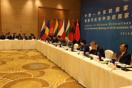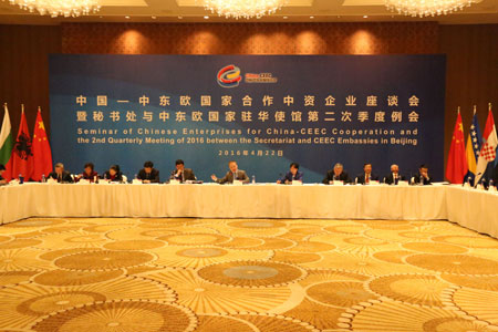 2016年4月22日,中国—中东欧国家合作(“16+1合作”)中资企业座谈会暨秘书处与驻华使馆季度例会在京召开。外交部部长助理、中国—中东欧国家合作秘书处秘书长刘海星,中东欧16国驻华使节和外交官,来自基建、能源、产能、通讯、金融等领域近40家企业代表,工信部、商务部等秘书处部分中方成员单位以及中国—中东欧国家省州长联合会中方成员单位代表200余人出席。欧盟驻华代表团官员作为观察员列席。