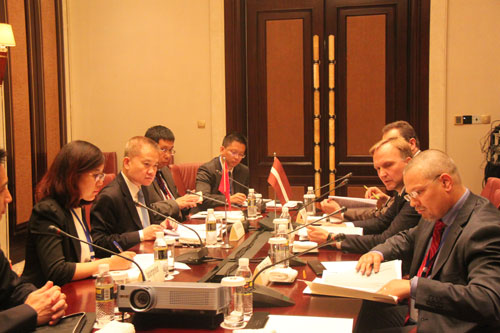 外交部部长助理、中国—中东欧国家合作秘书处秘书长刘海星6月24日在海南省海口市会见来华出席第七次“16+1合作”国家协调员会议的拉脱维亚国家协调员、拉外交部国务秘书贝德高维奇斯,就双边关系和中国—中东欧国家合作交换了意见。