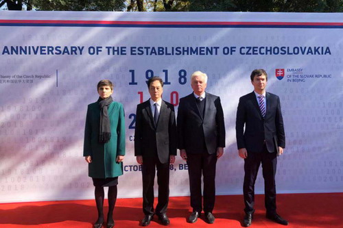 2018年10月26日,外交部副部长王超出席纪念捷克斯洛伐克建国100周年国庆招待会,其间分别会见捷克副外长考茨基、斯洛伐克驻华大使贝拉。