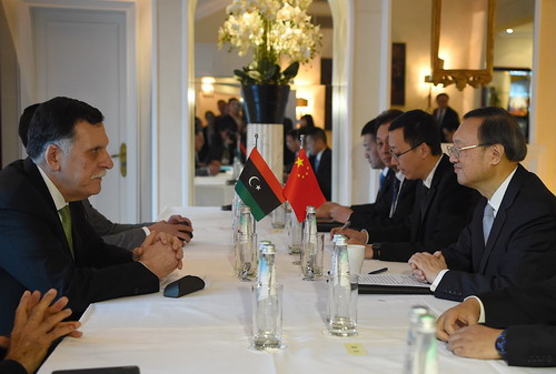当地时间2019年2月16日,中共中央政治局委员、中央外事工作委员会办公室主任杨洁篪在慕尼黑出席第55届慕尼黑安全会议期间会见利比亚民族团结政府总理萨拉吉。