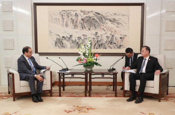 2023年10月17日,外交部副部长邓励在北京会见来华出席第三届“一带一路”国际合作高峰论坛的突尼斯外交部国务秘书拉吉巴。