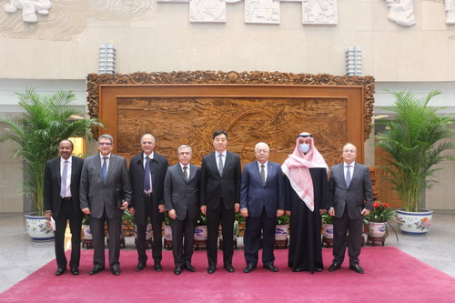 2021年3月5日,中国政府中东问题特使翟隽集体会见阿尔及利亚、巴勒斯坦、突尼斯、科威特、约旦、埃及驻华大使和阿盟驻华代表处主任。