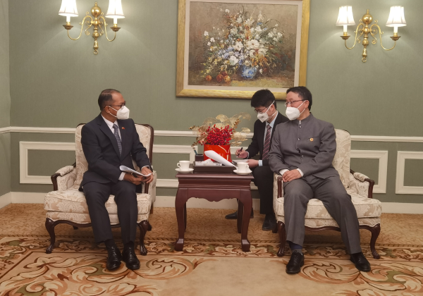 2023年1月10日,外交部亚洲司司长刘劲松会见缅甸新任驻华大使丁貌瑞,就双边关系等交换意见。