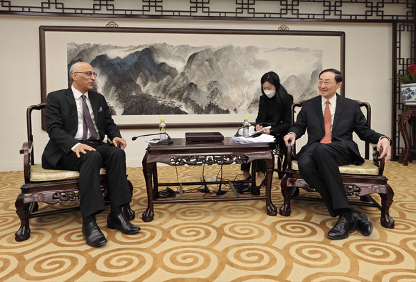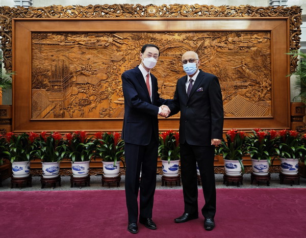 2023年1月17日,外交部副部长孙卫东会见巴基斯坦驻华大使莫因·哈克。