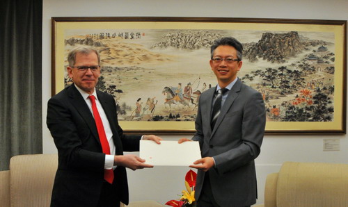 2019年3月12日,外交部礼宾司副司长兼使团办主任王鲁彤接受瑞士新任驻华大使罗志谊递交的国书副本。罗志谊大使于2019年3月9日抵京。